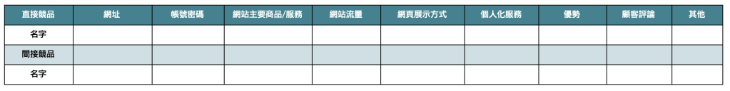 - 網站主要商品/服務:你的對手未必會跟你完全相同,所以記得放上他們的主力產品方便分析。