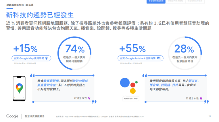 根據Google針對台灣區民眾2020年的調查,相較去年同期使用智慧語音助理服務的民眾增加了55%。